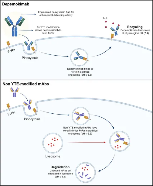 exdensur (депемокимаб) обладает повышенным сродством к IL-5 и удлиненным периодом полувыведения