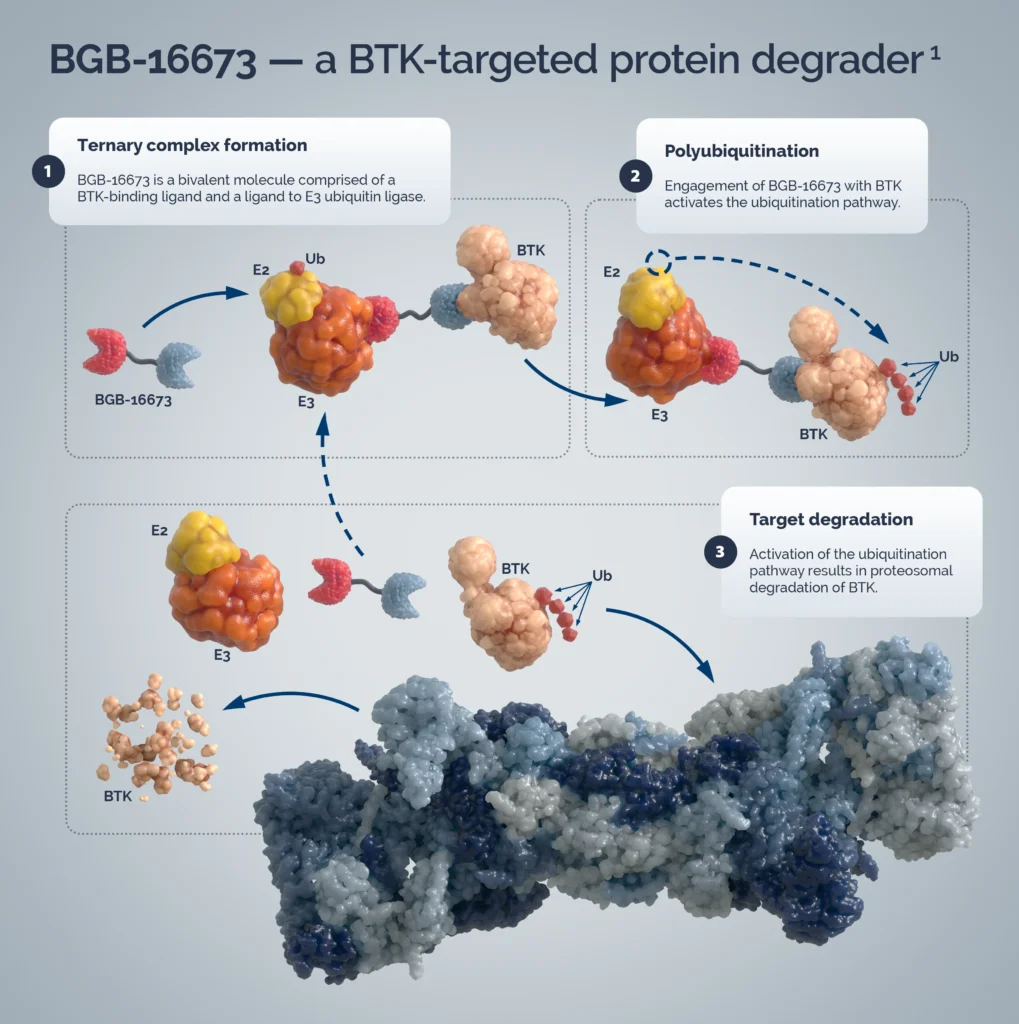 Прорыв BGB-16673 заключается в том, что он не просто ингибирует активность BTK, а непосредственно разрушает её.
